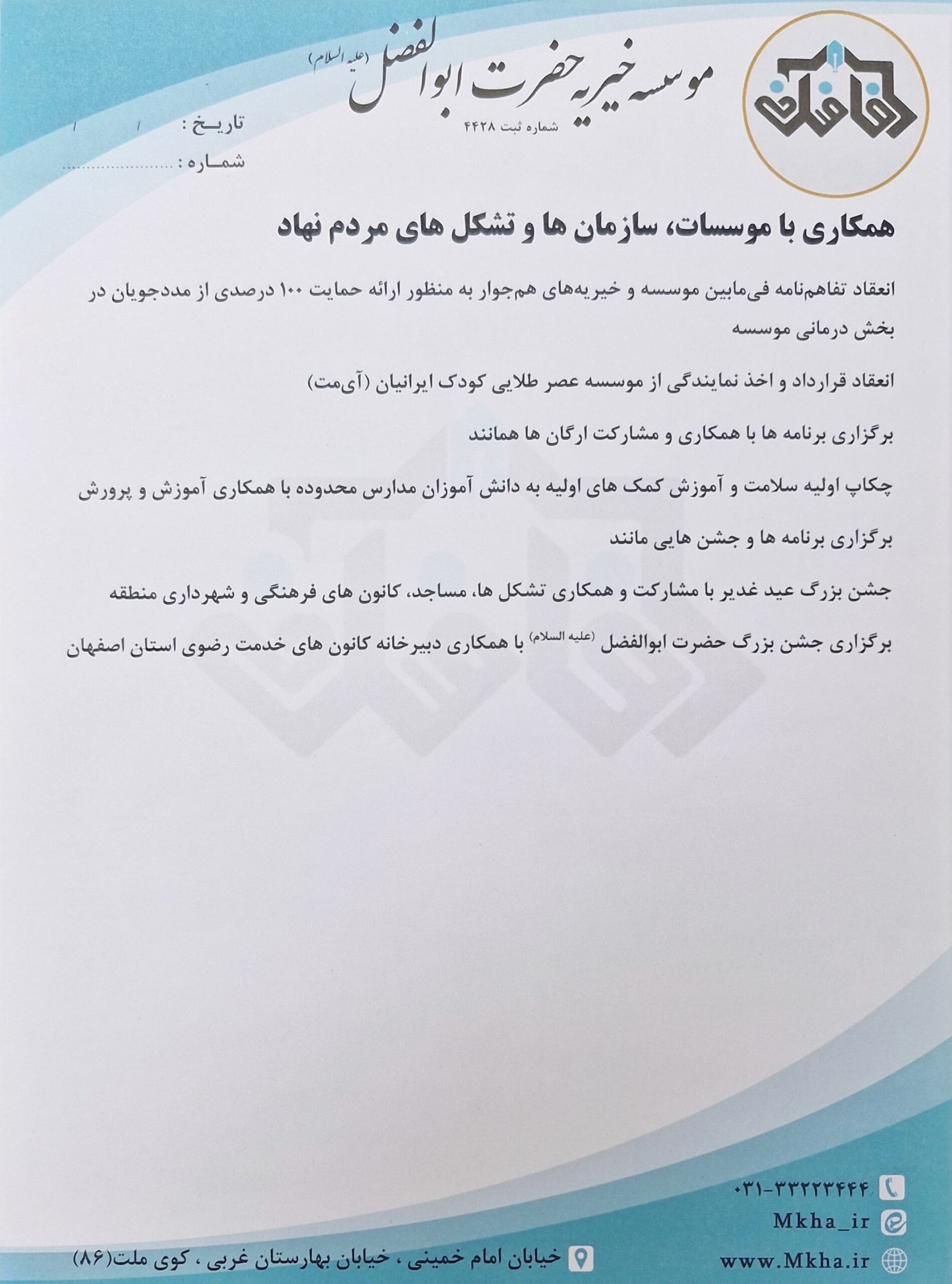 وی همچنین عضو مجمع مؤسسه خیریه حضرت ابوالفضل(ع) بوده و در حال حاضر بهعنوان عضو هیئتمدیره این مؤسسه فعالیت میکند.